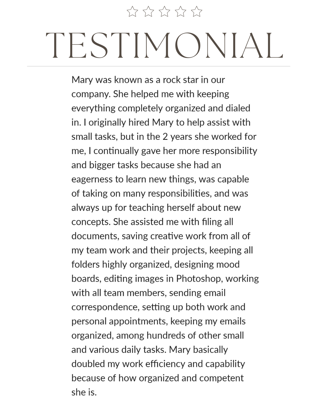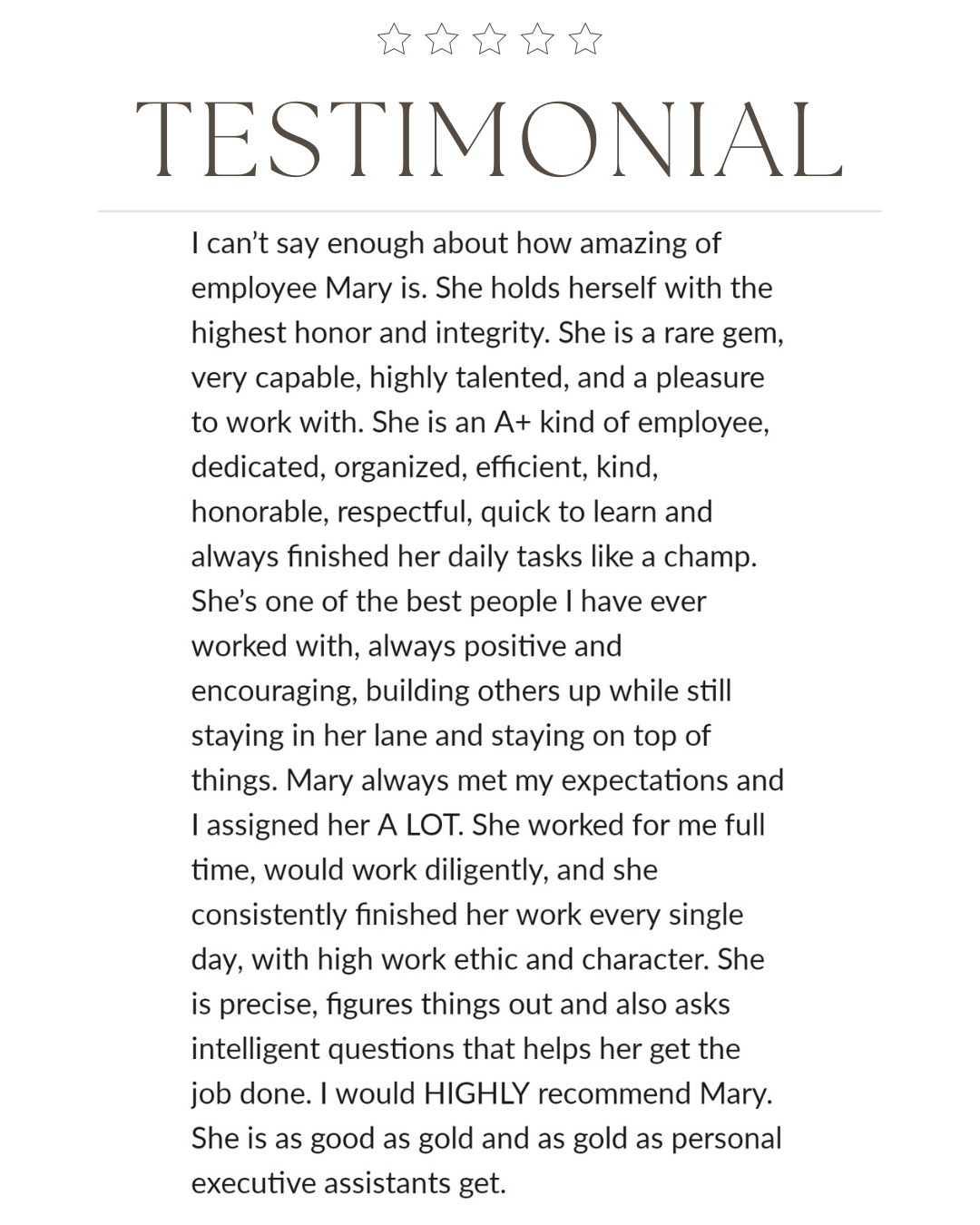 ❝ You were an excellent EA, picking things up really fast and helping us enormously. ❞