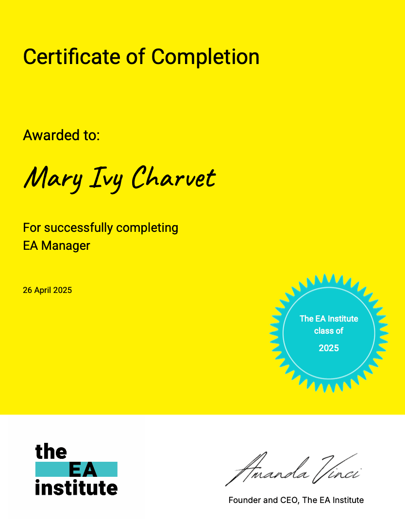 I bring over 6 years of diverse experience supporting businesses across different industries and countries. Having worked both in corporate offices and remotely, I’ve found my true passion as an Executive Assistant.
